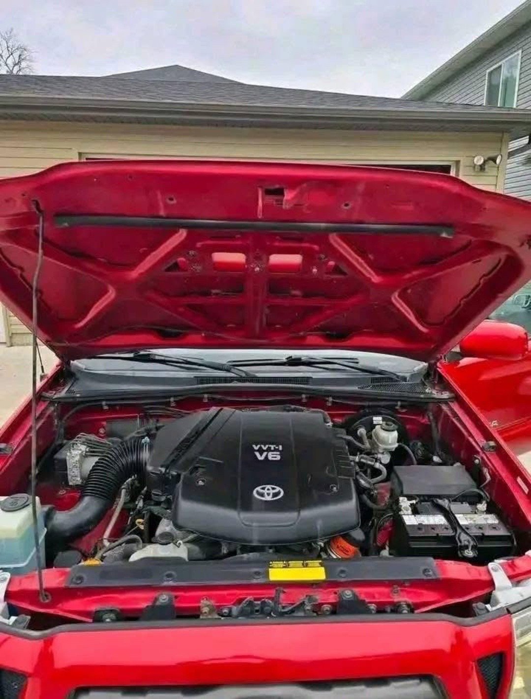 The red exterior finish gives this Tacoma a bold and rugged appearance that stands out on the road. Toyota designed the Tacoma with strong body lines, a durable frame, and a practical truck bed that is ready for work or recreation.