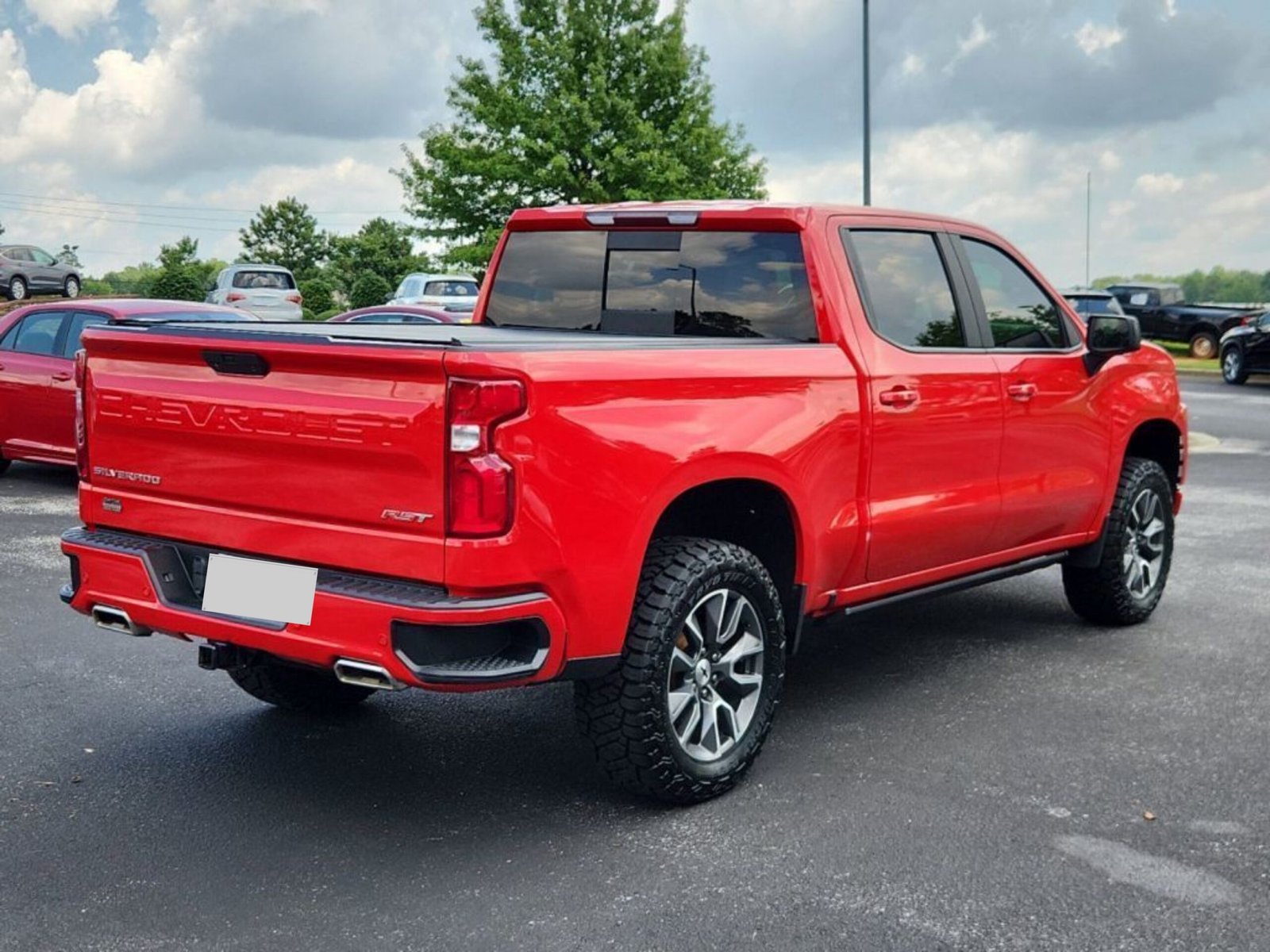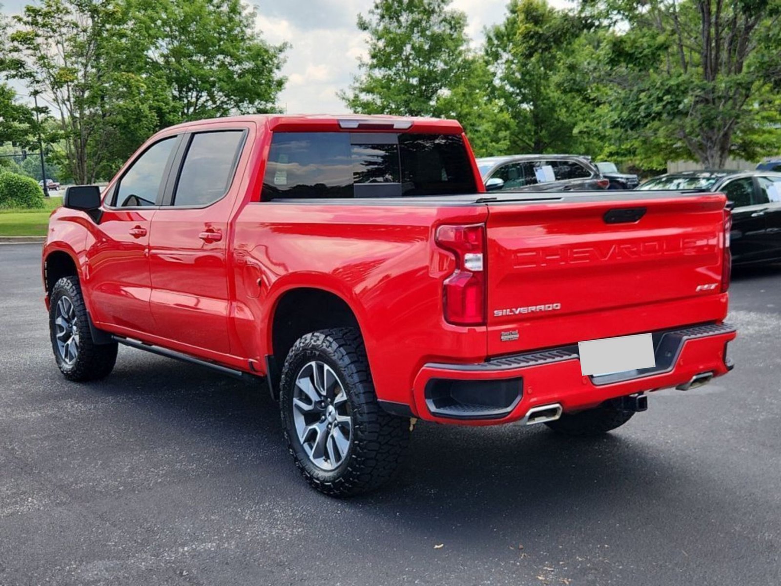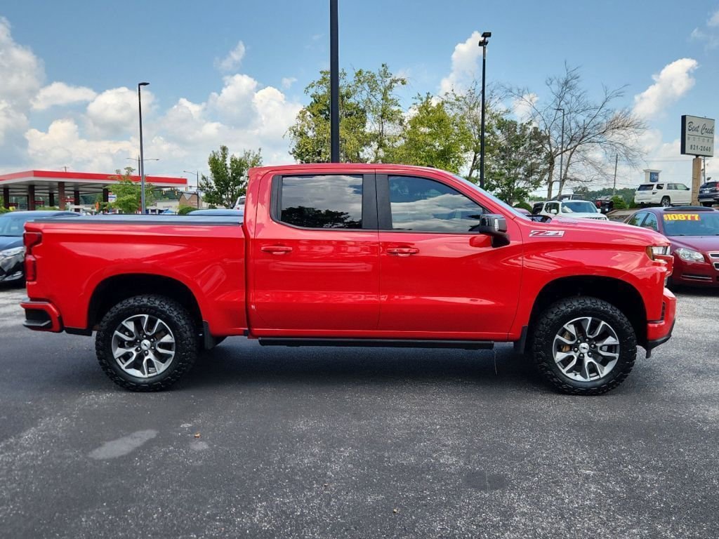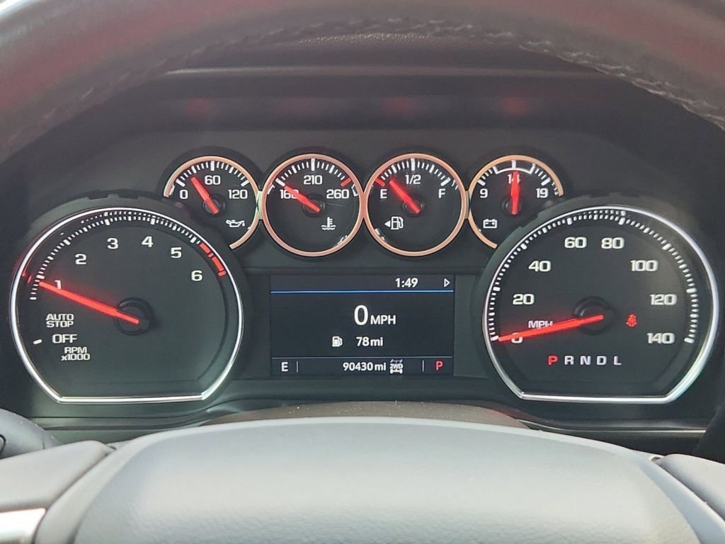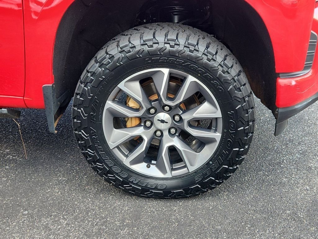 This 4wd 2021 Chevrolet Silverado 1500 RST features a Red Hot exterior with a Gideon/very Dark Atmosphere interior and has only 90,409 miles.