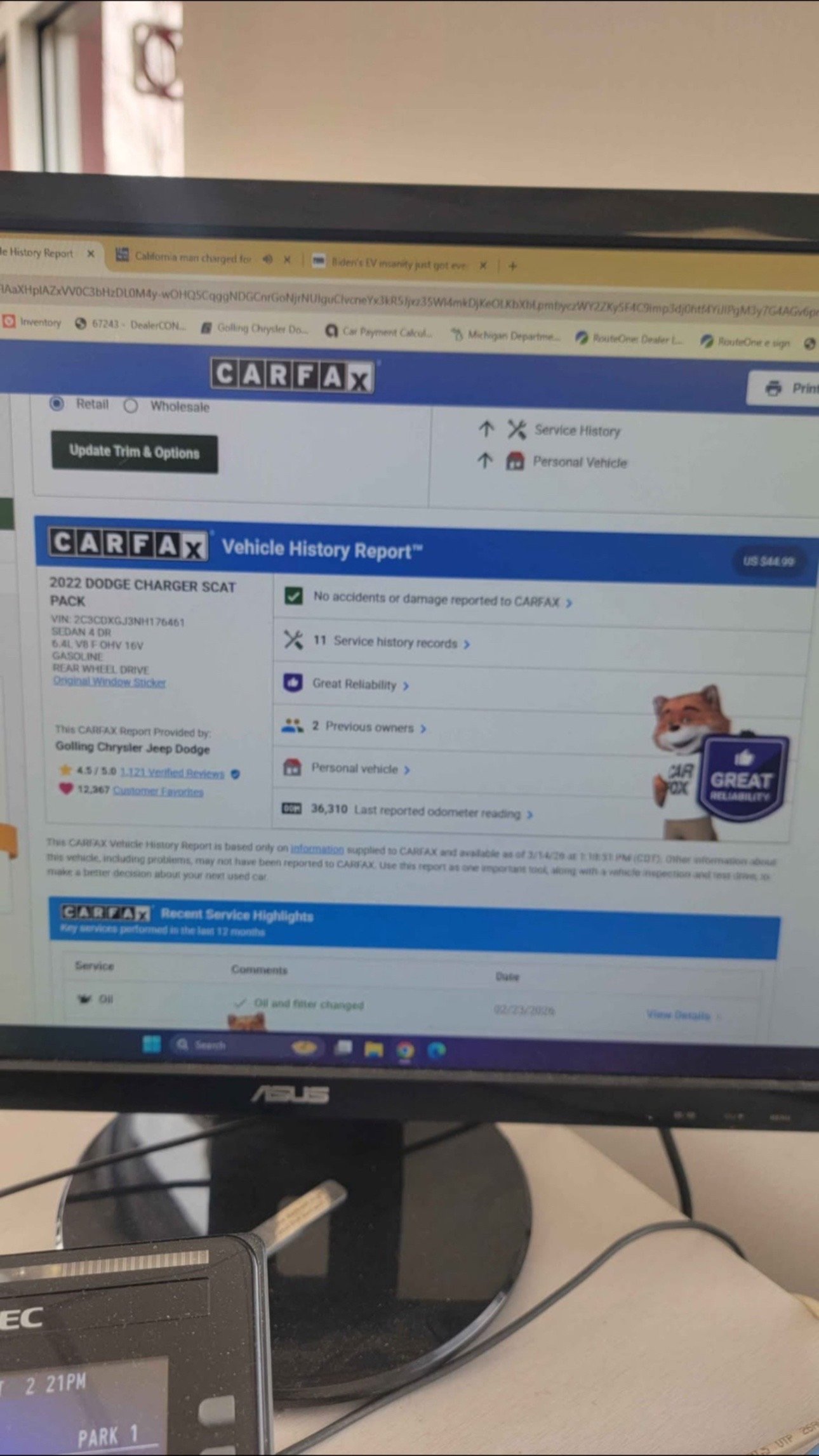 With only 36,805 miles, this Charger still has relatively low mileage for a modern performance vehicle. The seller also notes that the car has had only two owners and is fully paid off, which makes the buying process much simpler since there are no financing liens attached to the title.