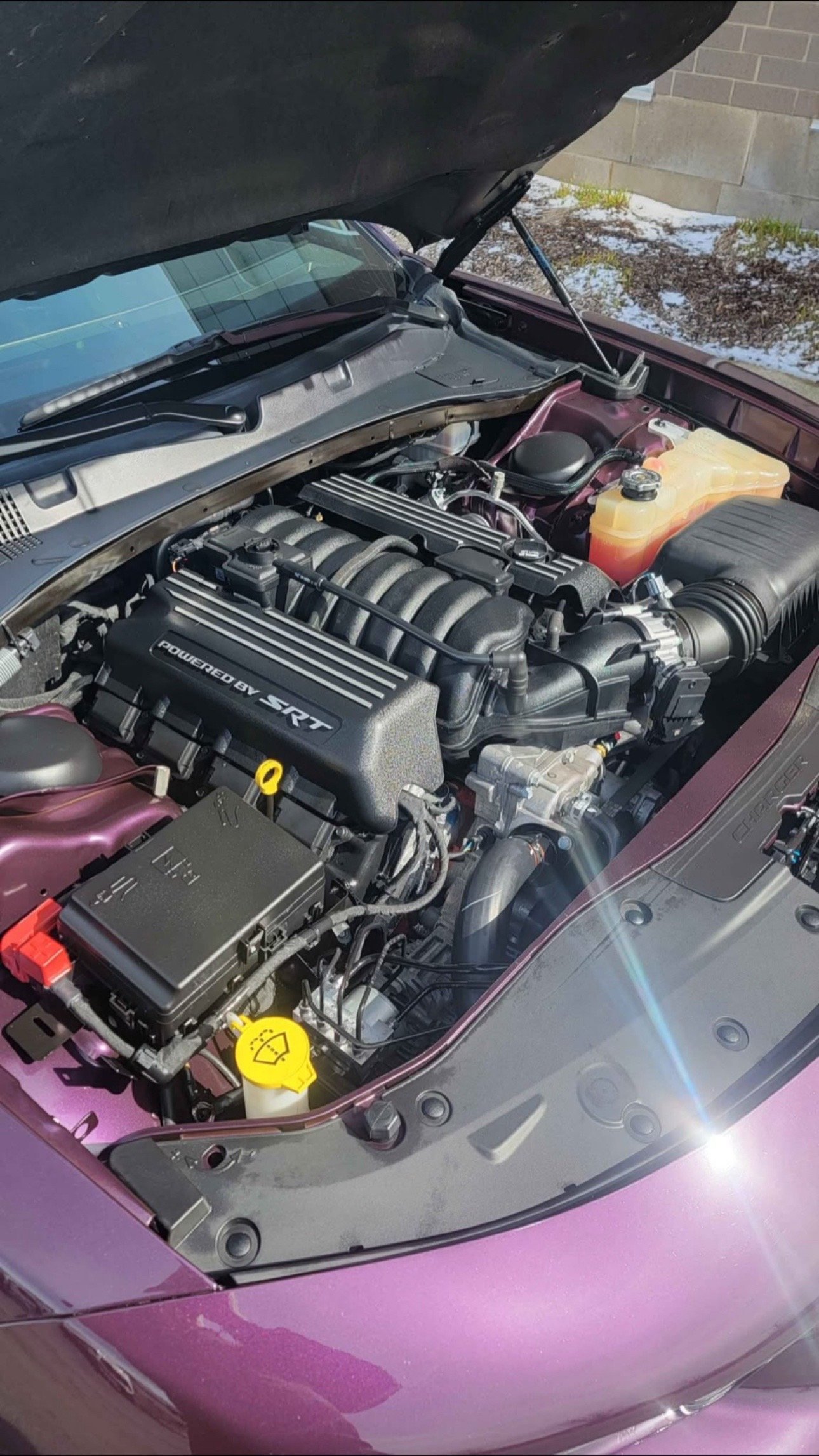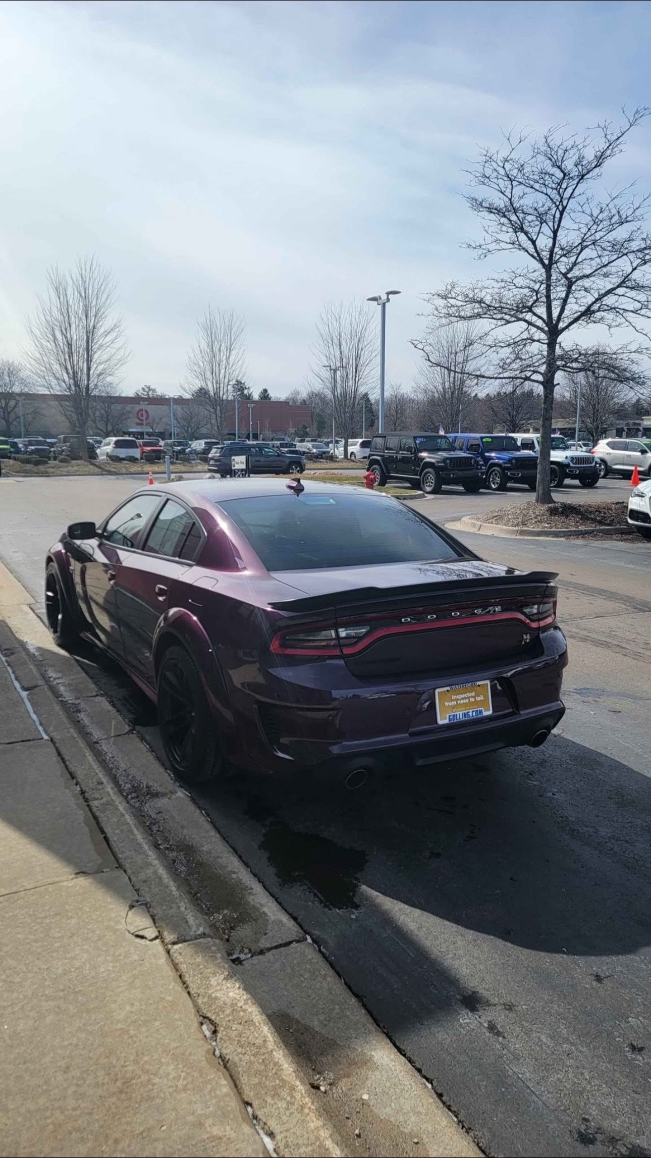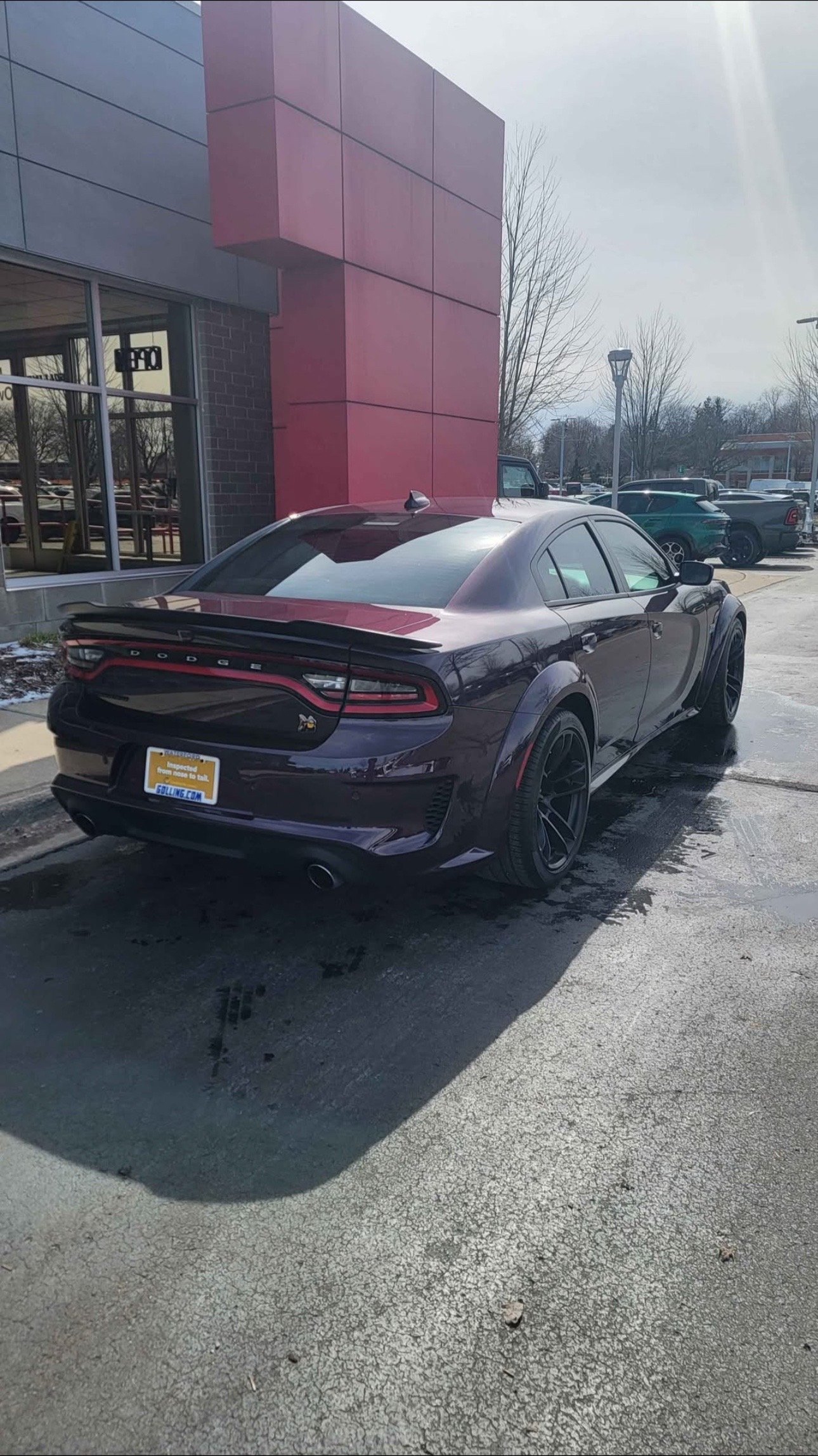 Another standout feature of this vehicle is its striking Plum Crazy Purple exterior color. This color is one of Dodge’s most iconic heritage colors and has been associated with high-performance muscle cars since the late 1960s. When paired with the aggressive widebody fender flares and performance wheels, the result is a vehicle that instantly grabs attention wherever it goes.